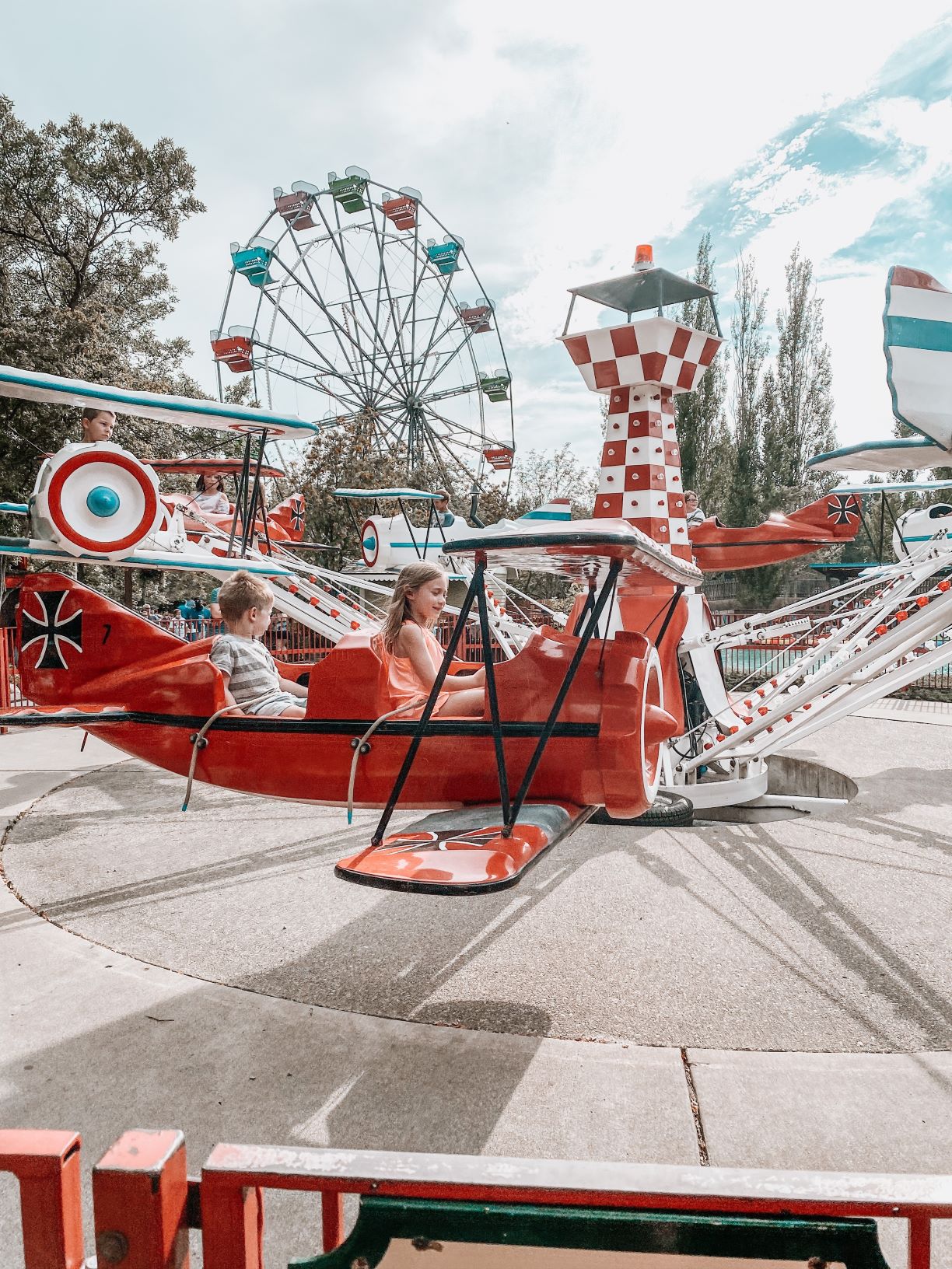 For some reason my youngest could ride this all day and his older sister is always happy to oblige! This mini rise and drop ride is low thrill, making it a great option for toddlers and young kids wanting something a little more gentle! One adult can also ride this one if your child doesn’t feel comfortable riding without a grown up!