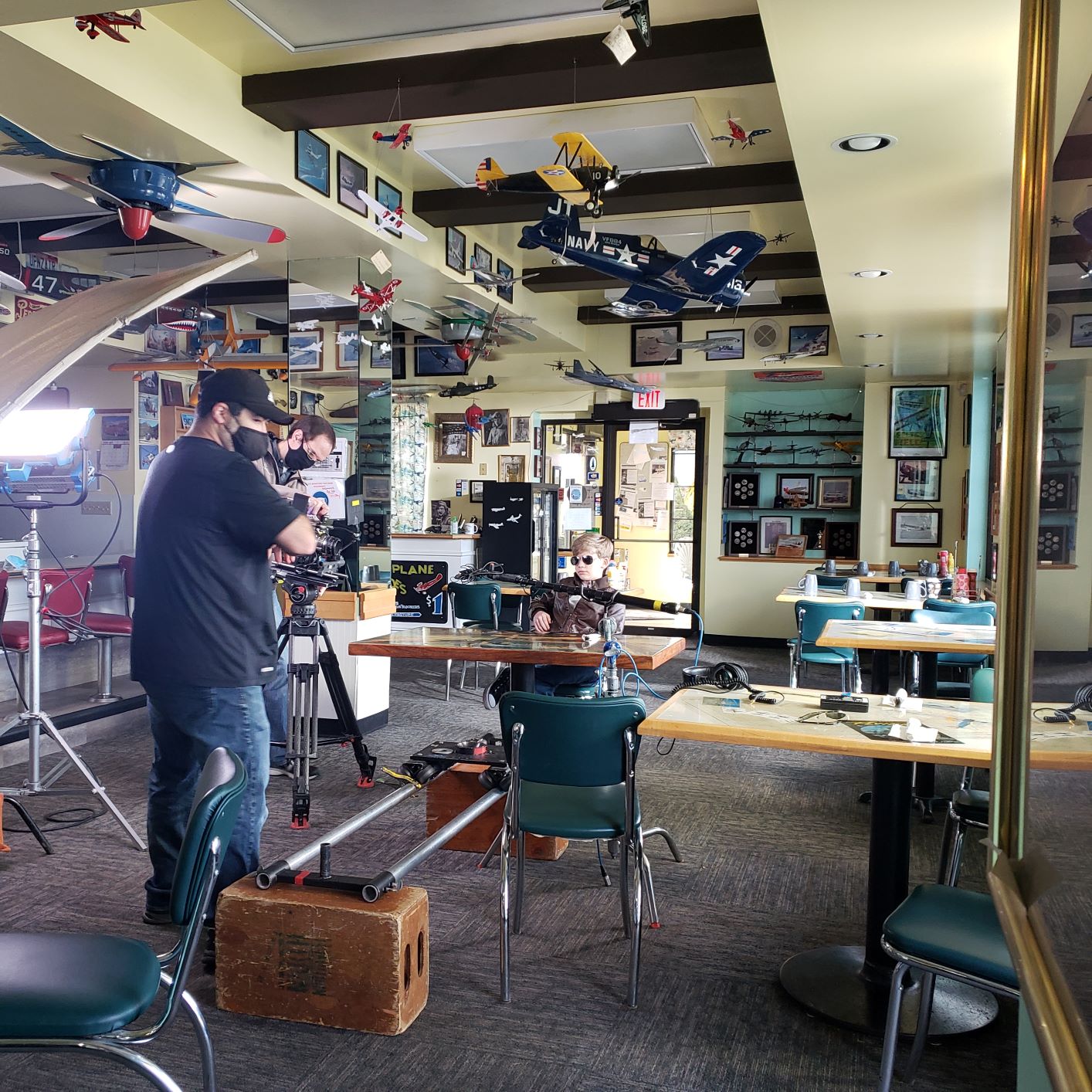 Charley/ Ace says: “Some of my favorite moments from the filming day were seeing all the equipment and cameras, getting into the wardrobe, and learning different parts of the camera movement, staging and even repeating lines. It was a challenge to not make any mistakes and nail each take and try to not laugh. Tomas, the director, was really nice and helped me when needed. My favorite scene I did was the last scene in the hanger with Jeremy being the mechanic. I liked being able to move in and out of a scene and keep playing the character. When we were all done filming, I was shocked to learn that we were there for 8 hours. Time went very fast out there. And I can’t wait for another chance to do a commercial or movie (wink wink). Now who wants my autograph!?”