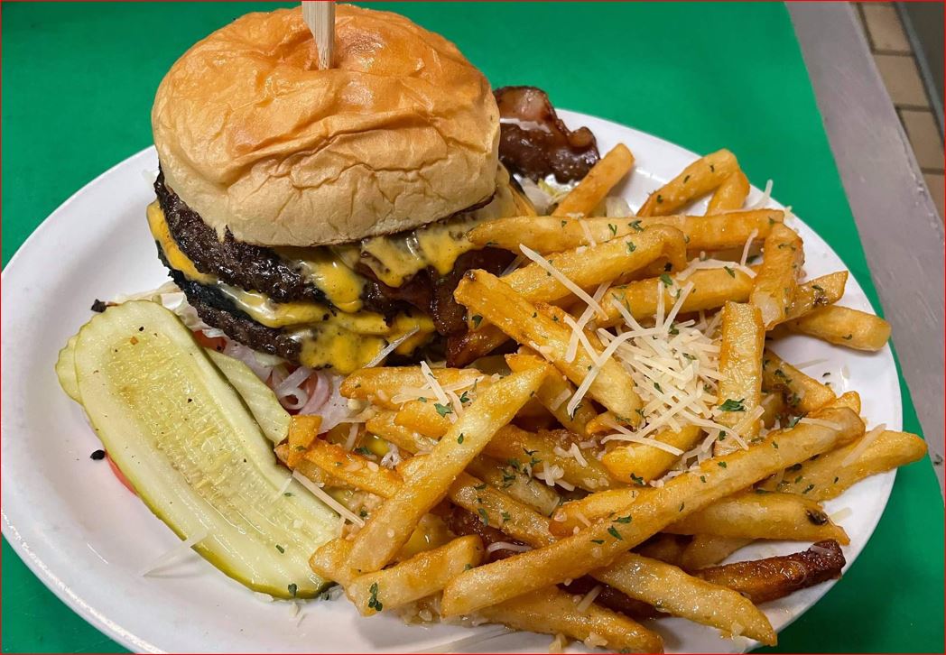 Eating at Nosworthy’s is always a treat because everything is homemade and prepared to order. I clearly remember the first time I ate there, nearly 25 years ago. My husband and I had actually just started dating and he took me there for breakfast. He raved about their famous “Kitchen Sink” omelet and said that I had to try it! Trust me when I say that he was not wrong. A few of our absolute favorite menu items are the nachos, Makin’ Bacon burger & fries, quesadilla, and crab salad.