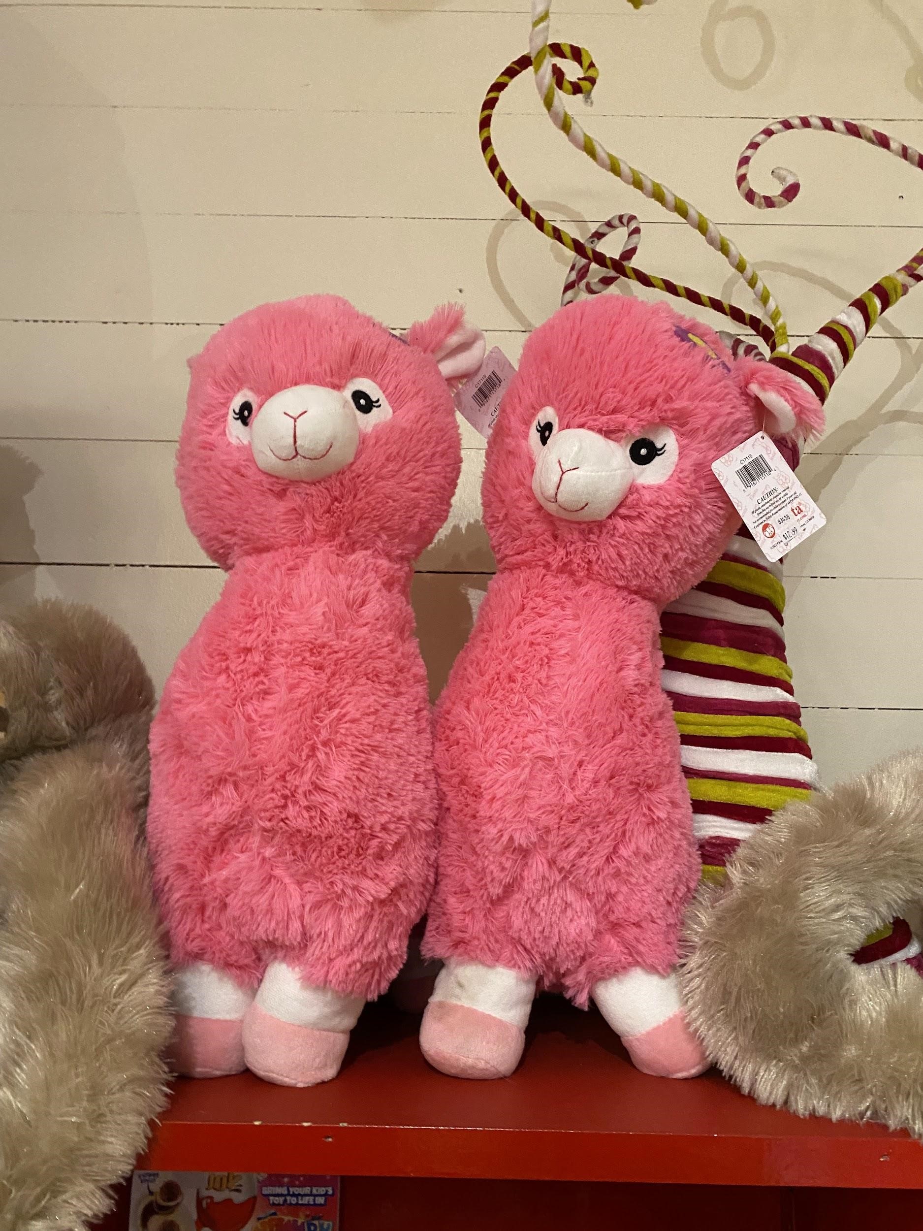 We wanted to snuggle up with these stuffed Big Foot plushies. They were $23.99 each at the General Stuff Mercantile. A top seller this year at the Curtiss Candy Factory has been these darling plush alpacas! ($12.99).
