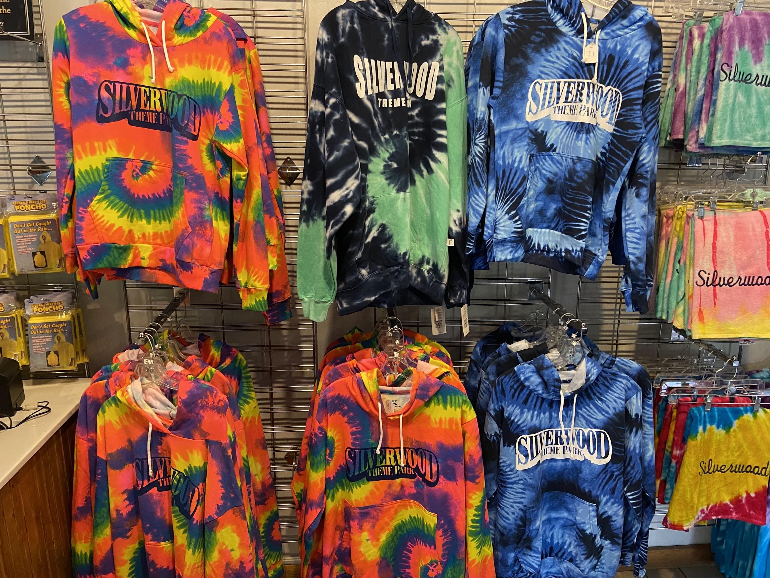 Sweet Treats on Main Street has funky, tie-dyed sweatshirts and tee-shirts in various colors. They even sell a kit to make your own Silverwood tie-dyed tee ($17.99)!