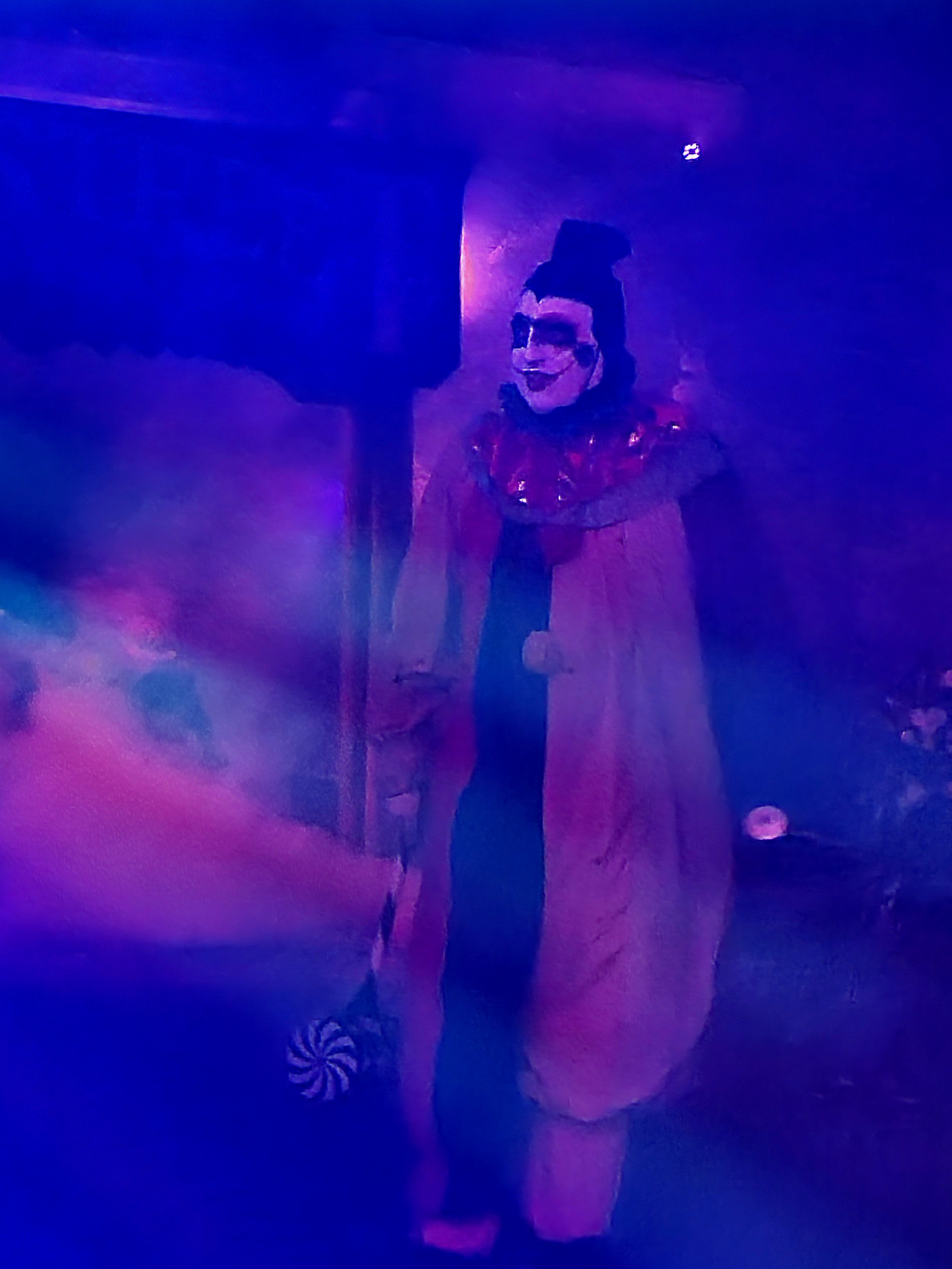 After getting through multiple scary areas in Clown Town, we finally reached our first ride: Timber Terror, running backwards! As a roller coaster junkie, I was thrilled. Our coaster-fearing friend, on the other hand, not so much. He had to leave the courtesy pass line to quickly find the bathrooms in order to have a nervous bathroom break before he could ride (aided by the fact he just “had to have” ice cream earlier that day, even though he is lactose intolerant). Although he denied it, he did seem slightly dismayed to find out that we had graciously waited for him to get back so he could ride the coaster with us and not be left out of the action. Nevertheless, he bravely rode the backwards roller coaster, sitting next to his wife (although we did witness the color drain from his face).