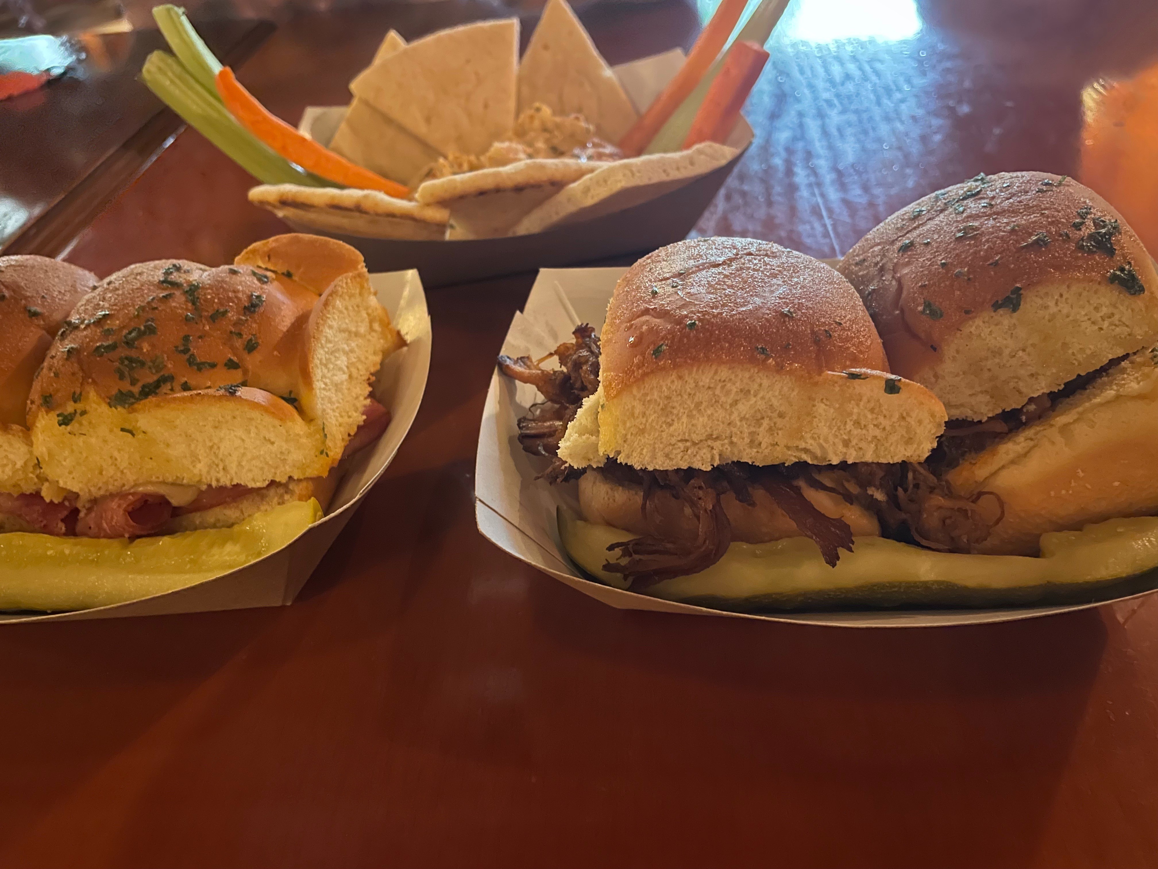 The sliders are delicious! You have the choice of pulled pork or ham and swiss. I recommend getting an order of both, along with the hummus dip with pita and veggies. They are big enough to share with your family (which I did) but also yummy enough to keep to yourself. They are melt-in-your-mouth goodness. My kids devoured the sliders and slurped up the hummus. Any time I don’t have to force them to eat is a total win.
