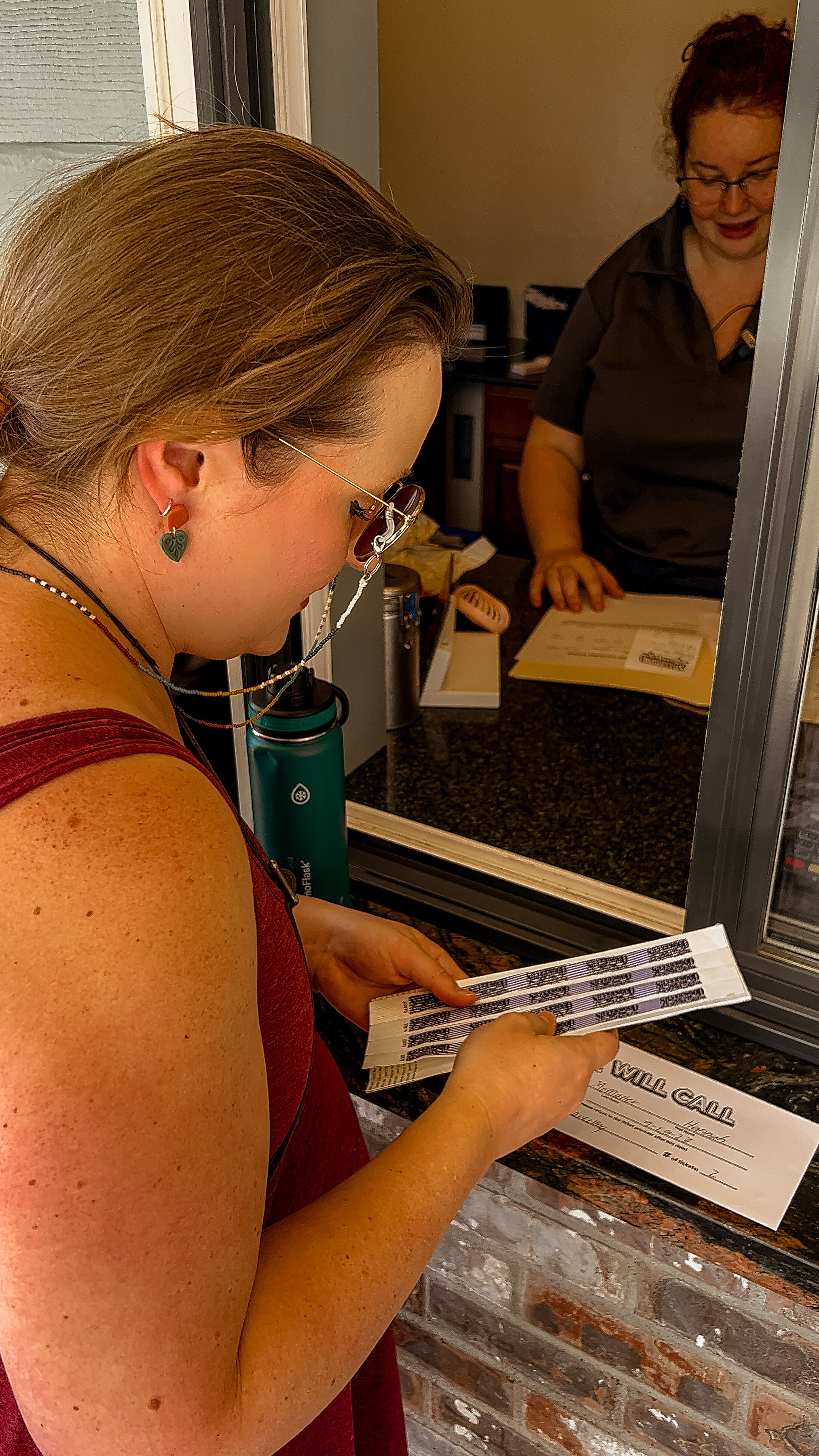 If you have just collected tickets, you can pass those out through your group and then proceed to the park entrance. Our personal favorite person to visit is Mr. Wesley. You’ll recognize him on sight by his Gandalf-like demeanor and beard.