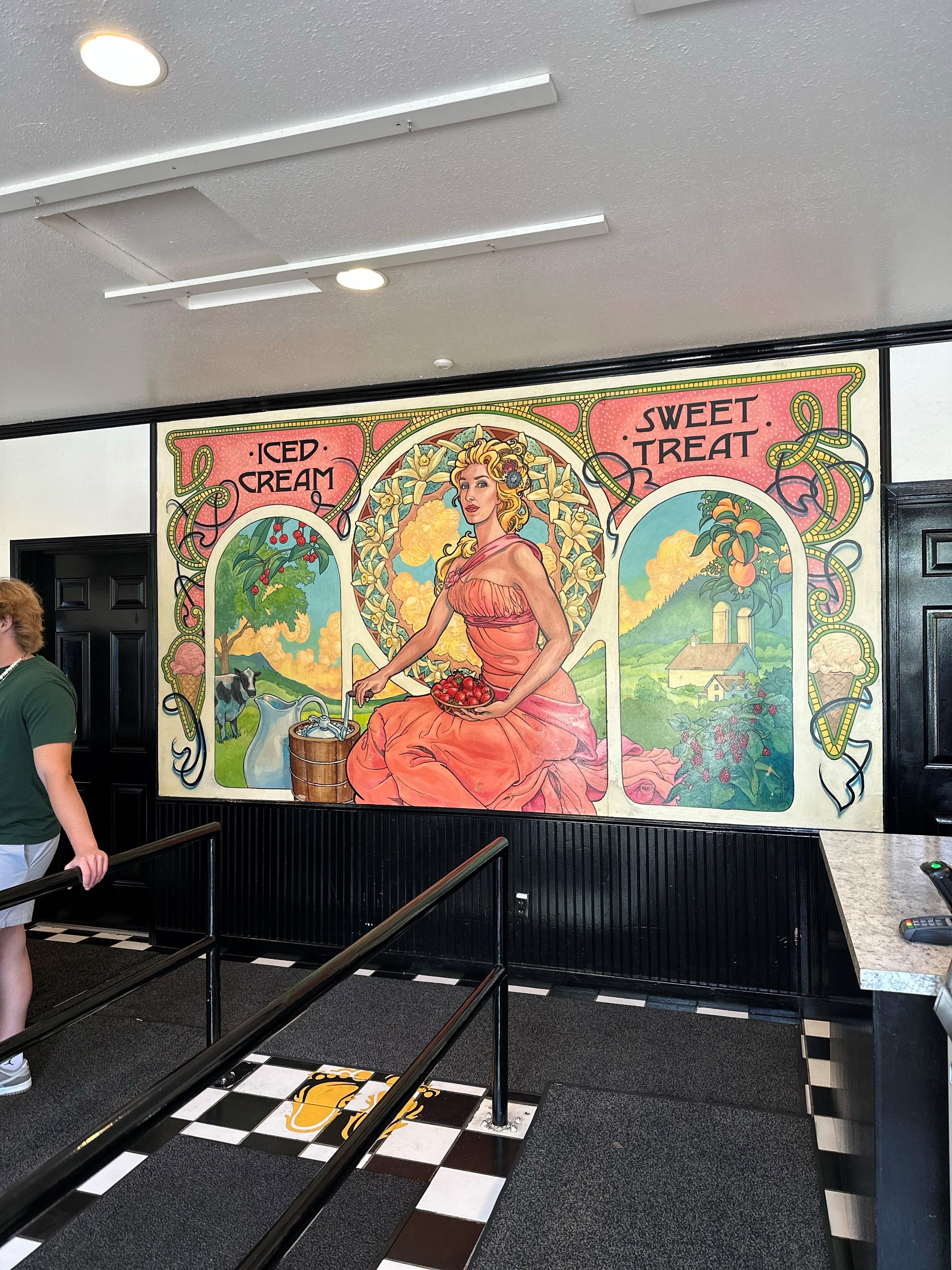 As soon as you walk in, you’ll be greeted by this gorgeous mural as you wait in line.