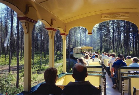 One of my earliest memories of Silverwood is the train ride. I remember feeling like I was on a real-life adventure for the first time. As we chugged along, I took in the beautiful scenery. Then we approached an area that looked like a campsite, with clothes strung out on a line to dry. I believed people actually lived there.
