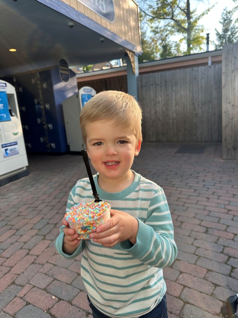 Every two weeks or so, we’d head over from about 11–1 to ride his favorites. When Boulder Beach opened, we’d go after nap time and eat dinner at the park (always a turkey leg, my toddler’s top pick!).